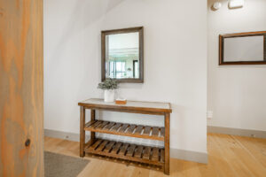 玄関の広さにもよりますが、内側の左右両端に置くのをお勧めしてますが、小さな玄関の場合は一ヶ所でもいいと思います。