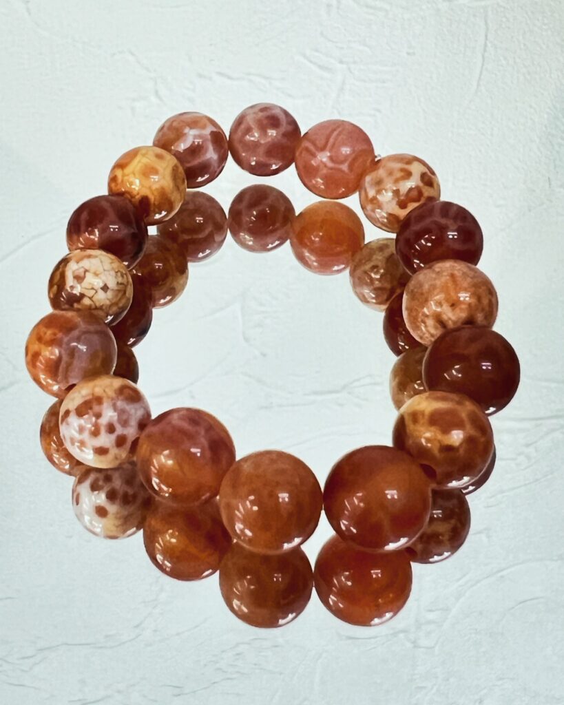 リモナイトなどのインクルージョンを含む瑪瑙の一種で古くから悪霊や夜の恐怖を追い払う力あると伝えられ、この石は大地と深くかかわりがあり、収穫を増やす働きがあると伝えられてきました。